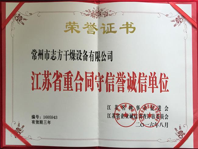 江蘇省重合同守信譽誠信單位
